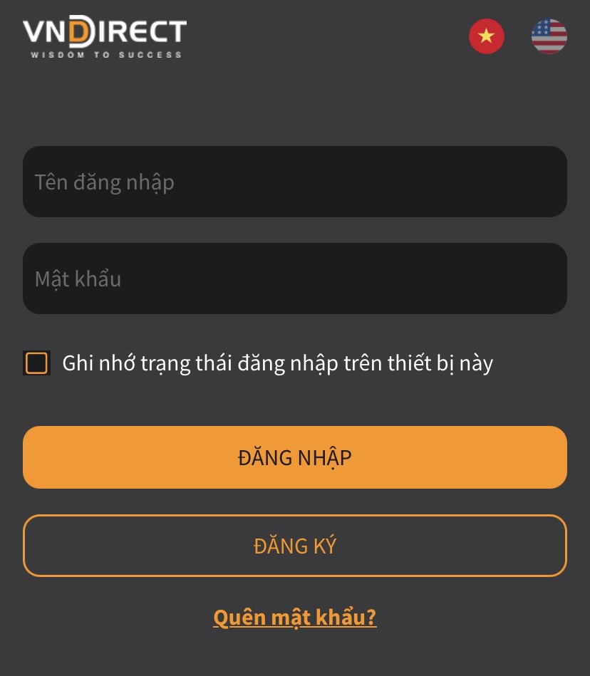 Bước 1: Truy cập https://myaccount.vndirect.com.vn/ hoặc tải ứng dụng VNDIRECT Financial Investment